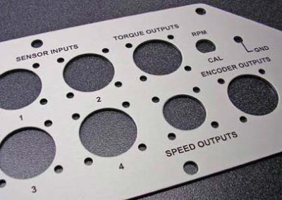 Our CNC Machining department has the ability to produce completed nameplates and panels in a wide range of shapes and sizes utilizing our “drop-in” tooling method. Our high speed strip feed die cutting equipment can produce quality parts while maintaining tight dimensional tolerances. Countersunk holes, threaded holes, and Pem studs can also be added to your tags and panels. RETURN TO PROCESSES